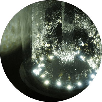 Inside you can hear the gentle whisper of the water produced by its fall through its crystalline shell, imitating the sound that occurs when water moves through streams or dances in fountains in squares. This unique feature makes the Nayade CR luminaire able to offer us sound experiences that can lead us to a conscious meditative state.